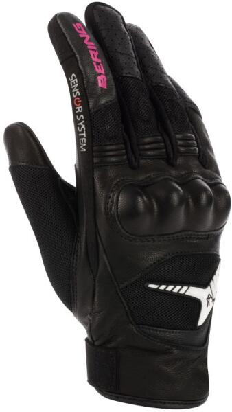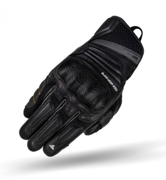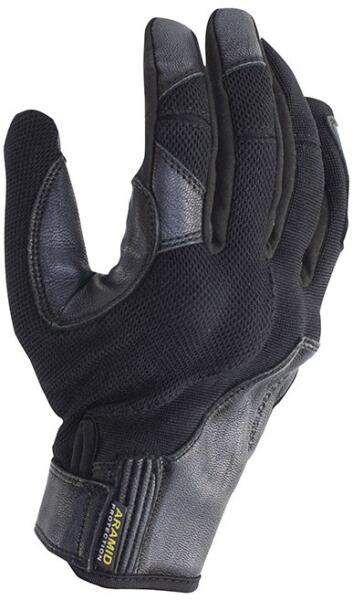 Textil rövid kesztyűk, amelyeket a tenyéren lévő bőrpanelek egészítenek ki. Poliuretán ízületi védő. D3O metakarpális védő megerősített anyagból és habbélésből a jobb ütéselnyelés érdekében. Megerősített tenyér a megnövekedett kopásállóság érdekében. Cipzáras nyakkendő tépőzárral a csuklóján. A kesztyűk lehetővé teszik az érintőeszközök vezérlé