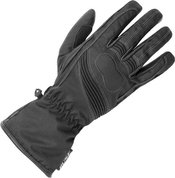 Porelle vízálló, szélálló, lélegző membrán Kitűn minőségű marhabőr Ergono mikus szabás Stretchp anel az ujjakon és a kézfejen Tépő zár a mandzsettán és a csuklón Biztonság: Párnázott textil bütyökvédő D upla réteg bőr a tenyéren