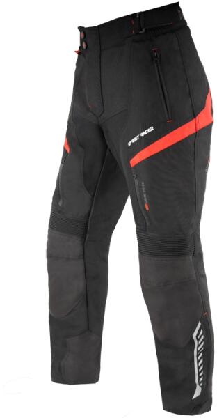 Egy motoros nadrág minden útra. Biztonságos és kiváló minőségű motoros nadrág. Főbb jellemzők és tulajdonságok: Anyag - poliészter Szellőzés - AIR COOLING SYSTEM Légáteresztő hálós belső réteg CE 2. szintű térdvédők Előkészítés csípőprotektorokhoz (ezek a protektorok nem tartozék) Stretch panelek Fényvisszaverő elemek Zsebek apró tárgyak tárolására Tépőz