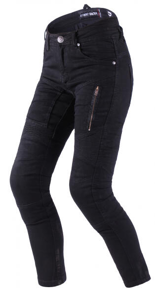 A motoros farmer sztreccs Cordura® farmerből készült, amely szakadás- és kopásálló. 64% pamut, 22% polietilén, 12% poliamid, 2% elasztán. SEESMART 1. szintű tanúsítvánnyal rendelkező térd- és csípőprotektor. Kényelmes szűkebb szabás. Biztonsági varratok a hármas varrásnak köszönhetően. Elülső és hátsó zsebek. Ez a kényelmes, laza megjelenésű motoros farmer lesz