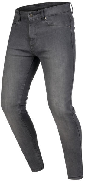 A farmer 88% pamutból, 10% poliészterből és 2% spandexből készül. Vékony illeszkedésű vágás. Bélés kevlár® DUPONT aramidszállal. A farmer homologizált CE térdpárnákat (2. szint). Zseb, amely lehetővé teszi a farokcsontvédő behelyezését (a védő nem tartozék). A térdek és oldalak belsejéből varrott KEVLAR® DUPONT panelek növelik ezeknek a stresszes területeknek a
