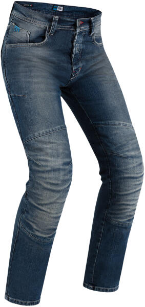 A farmernadrág 12,5 oz elasztikus pamut és Twaron® aramidszál kombinációjából tevődik össze. Az EN-17092 AAA – a védőöltözékekre vonatkozó szabványok által jóváhagyott. Magasfokú védelmet nyújt. Jóváhagyott térdvédőkkel EN 1621-1:2012. Jóváhagyott csípővédőkkel EN 1621-1:2012. A védők a nadrág külső feléről kivehetőek. Anatómiailag formázott térd. Pat