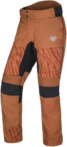 A nadrág 100% poliészterből készült. Kényelmes hálóval bélelt. Integrált membrán és kivehető termo bélés. CE Level 1. -es jóváhagyott térdprotektorok. Csúszásgátló anyag az ülőrészen. Szellőző cipzárak a nyári napokon való motorozáshoz. A térd fölött és a csípőnél található rugalmas panelek növelik a kényelmet ülés közben. Lehetőség a lábak meghossza