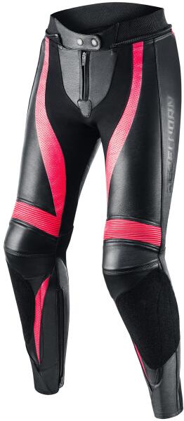 A nadrág 100% legjobb minőségű marhabőrből készült. Bélés poliészter hálós béléssel, amely elvezeti a nedvességet és tökéletesen légáteresztő. A nadrág tanúsított CE SAS-TEC térdprotektorokat ( level 2 ), CE SAS-TEC csípőprotektorokat ( level 1 ) tartalmaz. A térdprotektorok állítható magasságúak. A 4- way sztreccs anyag a nadrágon maximális kényelmet és korl