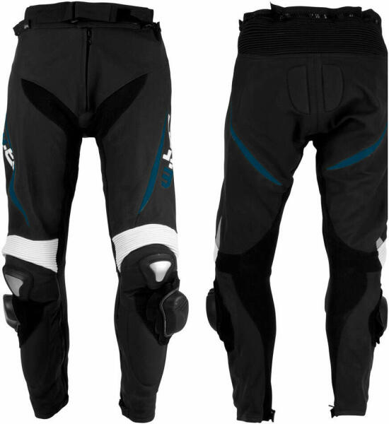 1,2-1,4mm vastag marhabőr Külső fémbetétes protektorok a térd fölött YKK cipzárok Bőr stretchpanel a derékon és a térd fölött Textilbetétek a vádlin, az ágyékrészen, az ujjakon és oldalt Extra cipzár a vádli szélességének állításához Összekötő cipzár Jól szellőző hálós betét Ideális kombináció az Imola vagy a Dervio bőrkabáttal Biztonság: Sa