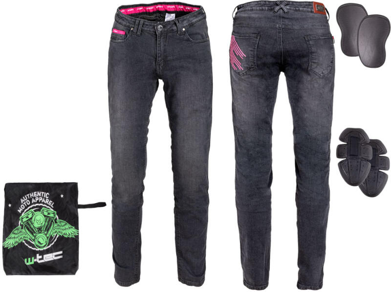 A W-TEC Leonarda női motoros farmer úgy néz ki, mint egy szokásos farmer, de mégis több mint egy egyszerű nadrág. Kivehető csípő- és térdvédővel ellátott. Védők nélkül a nadrág hétköznapi farmerként használható (és senki sem fogja észrevenni, hogy valójában motoros nadrág). Garantáltan remekül fogsz kinézni benne a motorodon. Tanúsított protektorokról van szó