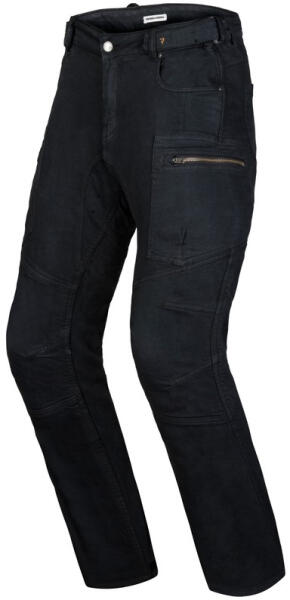 Farmer 81% pamut, 16% poliészter és 3% elasztán kombinálásával. Az elasztánnak köszönhetően a farmer tökéletesen alkalmazkodó és rugalmas. KeVLAR® DUPONT aramid szálbélés. CE levehető térdvédők - 2. szint. A térdvédők kívülről eltávolíthatók anélkül, hogy le kellene venniük a nadrágot. CE kivehető csípővédők - 2. szint. Zseb a farokcsontvédőhöz (a védő