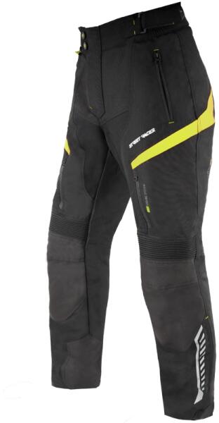 A textil motoros nadrág tartós 300D anyagból készült. A beépített membrán véd az eső és a szél ellen. 1. szintű térdprotektorok. Derékkörfogat-állítás a tökéletes illeszkedésért. Szellőző cipzárak a combon találhatóak. A lábszárak 4 cm-rel meghosszabbíthatók. Csúszásgátló panelek az ülőrészen. Stretch panelek a csípőnél. Fényvisszaverő elemek a motoros l