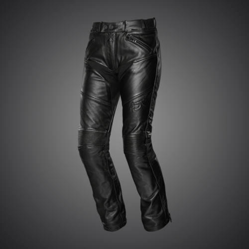 A nadrág 83% prémium marhabőrből, 17% poliamidból és 100% poliészter bélésből készült. A nadrág EN 1621-1:2012 szabvány szerint jóváhagyott térdprotektorokkal rendelkezik. 3D ergonomikus kialakítás. Stretch panelek az ágyéknál és a térdnél a kényelem érdekében. Állítható derékpánt a tökéletes illeszkedésért. Perforációk a jobb légáteresztés érdekében. Ci