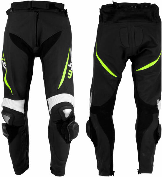 A W-TEC Vector férfi motoros bőrnadrág a versenymotorozás stílusos kombinációja érdekes, egyéni technikai részletekkel. A motoros bőrnadrág belső gumis CE védői és masszív külső fémlemezei, valamint a PU csúszásgátlók maximális biztonságot nyújtanak motorozáskor. A minőségi disznóbőr, 1,2-1,4 mm vastagságú, légáteresztő mesh alátét a garancia a minőségre. A