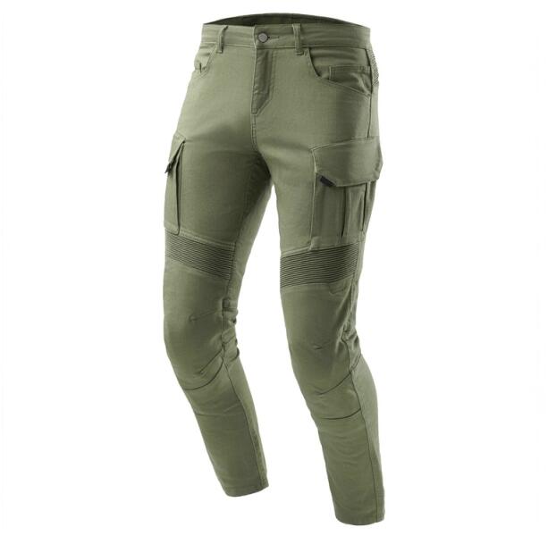 A motoros farmernadrág 98% pamutból és 2% elasztánból készült. Az elasztánnak köszönhetően a farmer tökéletesen alkalmazkodik és rugalmas. CE kivehető térdprotektorok - level 2. Zsebek a farokcsont-, és a csípőprotektorok számára. Súrlódásálló kevlár és poliészter kombinációjából készült bélés. A rugalmas betétek javítják a kényelmet és a mozgásszabadság