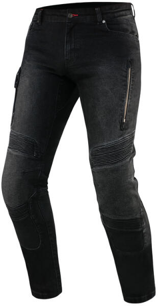 A farmernadrág 90% pamut, 10% poliészter és 2% elasztán anyag kombinációjából tevődik össze. Az elasztánnak köszönhetően a nadrág tökéletesen rugalmas és követi a test formáját. Aramidszálas megerősítéssel létrehozott béléssel KEVLAR® DUPONT. CE kivehető térdprotektorokkal – level 2 (a protektorok magassága állítható). CE kivehető csípőprotektorral – level