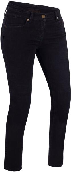 Farmerszabású női stretches motoros nadrág. Dupont Kevlárral erősítve. Állítható magasságú ALPHA CE térdprotektorokkal. CE minősítésű csípőprotektorok. 4 külső zseb. Fényvisszaverő betét. Méret: T0-T6.