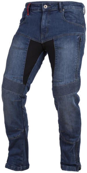 100% Pacu denim külső anyag. Tri-Comf belső anyagokkal erősítve (DuPont Kevlar, Coolmax Black szellőző textil anyag, Lycra bélés). CE level 2 térd és csípőprotektorok. Állítható magasságú térdprotektorok. Kettő első és kettő hátsó zseb, 1 érme tartó zseb. Rejtett hátsó telefontartó zseb. Méret: 26 - 38.