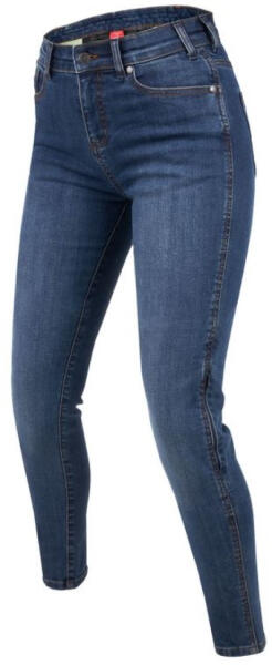 A farmer 81% pamutból készült, 16% poliészter és 3% elasztánnal. Farmer elasztánnal a jobb illeszkedés és kényelem érdekében. Modern szabású, Skinny fit magasderekú farmer. Kivehető CE - level 2 térdprotektorral (a protektor magassága állítható). Kivehető CE – level 1 csípőprotektorral. Bevarrt kopásálló panelek a térd, csípő és derékrészen. Térd felett és a de