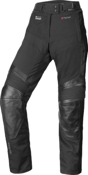 Stílusos, elegáns nadrág ami kombinálja a bőr biztonságát a textil komfortjával 1,2-1,4mm vastag marhabőr TFL Cool System bevonattal – nem melegszik a napon! Tactel textil betétek – könnyebb, puhább és erősebb a Cordura és Polyester anyagnál Kivehető Humax membrán – 100% vízálló, lélegző, szélálló Cipzáros szellőző a combon YKK cipzárok Stretchpanelek a