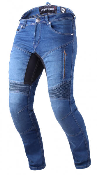 A farmernadrág 98 % pamutból és 2 % elasztánnal. Aramidszálas panelekkel kiegészített pamutbelsővel rendelkezik DuPont Kevlar®. A farmer tartozékai a jóváhagyott térd-és csípőprotektorok CE EN 1621-1:2012 - level 2. A combon található szellőzőnyílások jobb légáteresztést biztosítanak. A térd felett és a csípő tájékán elhelyezkedő sztreccspanelek növelik a kénye