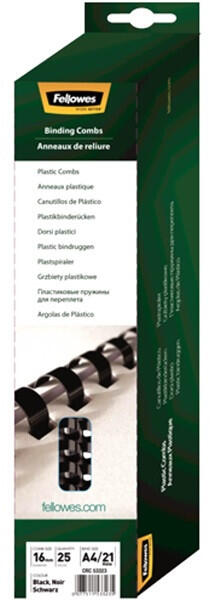16mm;25db-os;101-120lapos Fekete műanyag spirál Professzionális megjelenést kölcsönöz dokumentumainak Kiváló minőségű és tartós műanyag spirál Lapkapacitás: 101-120 lap