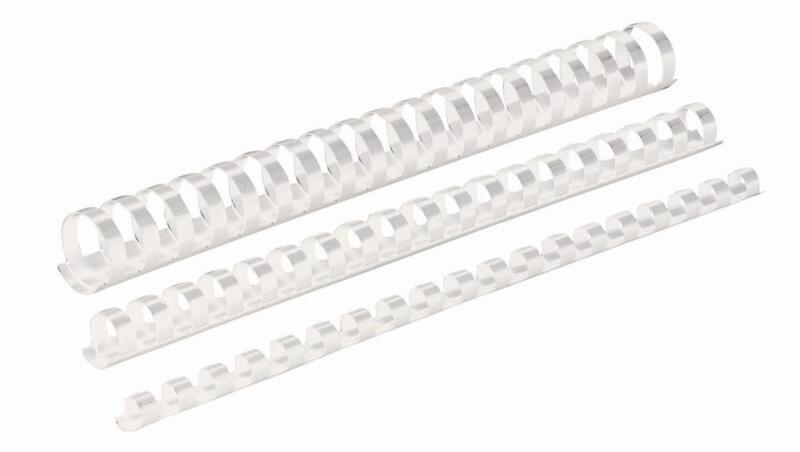 - 51 mm-es, 21 gyűrűs műanyag spirálok - Spirálozási lapkapacitás: 411-450 lap - Kiszerelés: 50 db/ csomag - Szín: fehér - Spirálhossz 30 cm