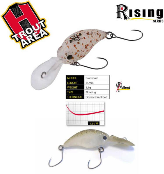 A pisztrángozásban szerzett egyre bővülő tapasztalatok alapján folyamatos a technika fejlesztés a "Trout area" világában. Az itt látható különleges formájú műcsalik megoldást kínálnak a fenék közelében tartózkodó pisztrángok hatékony becserkészéséhez. A csali relatív nagy tömeg/méret arányának köszönhető, hogy hamar eléri a meder alját, majd itt megfelelő bo