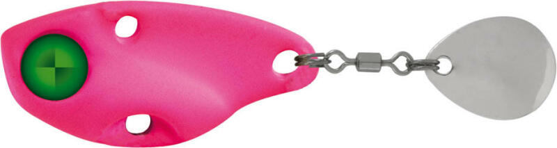 Szuper könnyű metál jig „Colorado tipusú forgó lapáttal. A test ill. hasi rész sokkal vastagabb, ezért nehezebb, a könnyed dobás és az optimális süllyedés érdekében. A háti, ill. farok rész nagyon vékony, ezért magas frekvenciájú vibrálást produkál. A műcsali végén egy kiváló minőségű forgó segédkezik a lapátfarok alacsony frekvenciájú csalogató hatásáér