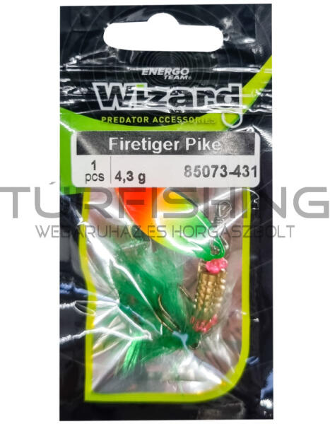 Wizard körforgó villantó - Firetiger Pike A Wizard villantók fő jellemzője a magas frekvenciájú vibráció, mely agresszív támadásra készteti a ragadozókat. Egyedi színének és univerzális alkalmazásának köszönhetően bármely hazai ragadozóhal fogható vele. Kiváló horgai kitűnő akadást, és a fárasztás során biztos tartást eredményeznek.