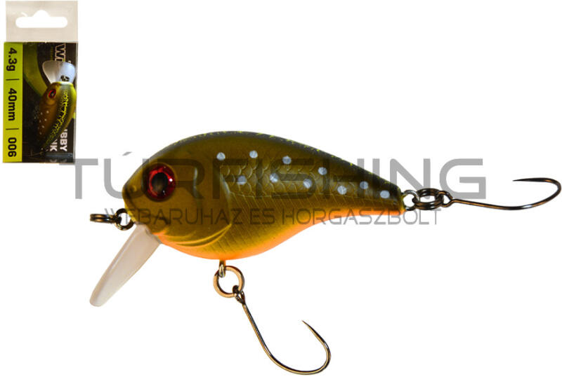 Wizard Chubby Crank wobbler „Hosszú távolságú crankbait, amely kihasználja a kiváló súly/térfogat arányt, hogy kiváló távolságokat érjen el még széllel szemben is. Ideális nagy pisztrángokhoz és őshonos pisztrángokhoz is nagy patakokban, kiváló eredménnyel - Asp, Black Bass és sügér esetében is, de a süllők sem vetik meg. Dupla hasított gyűrűvel és szimpla acé