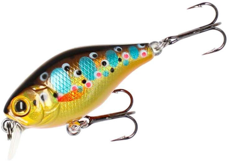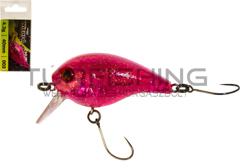 Wizard Chubby Crank wobbler „Hosszú távolságú crankbait, amely kihasználja a kiváló súly/térfogat arányt, hogy kiváló távolságokat érjen el még széllel szemben is. Ideális nagy pisztrángokhoz és őshonos pisztrángokhoz is nagy patakokban, kiváló eredménnyel - Asp, Black Bass és sügér esetében is, de a süllők sem vetik meg. Dupla hasított gyűrűvel és szimpla acé
