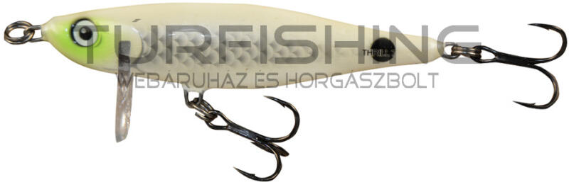 Salmo Thrill A balinólom és a wobbler minden jó tulajdonságát egyesíti. Az áramvonalas testhez viszonylag nagy súly társul, amivel eddig elérhetetlennek hitt távolságok is megdobhatók. Mozgása egyedi, a víztetőn rohanó küszt utánozva apró rezgéseket ad le, melyet rendkívül gyors vezetéssel érhetsz el. Alakja, mérete, színezete telitalálat. Mintha a küszről fénymásol
