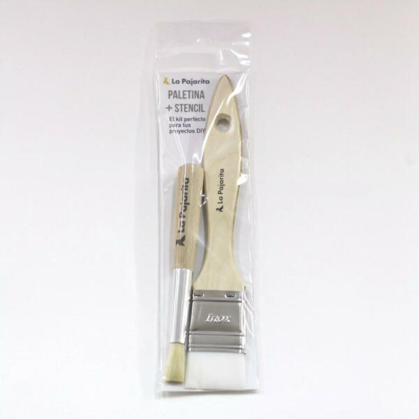La Pajarita ecset szett két különböző ecsettel n. 30 rövid sörtéjű lapos ecset és n. 02 ovális stencil ecset bútorfestéshez, hobbi festéshez Kiváló alapanyagok felhasználásával készült Spanyolországban: természetes fa nyél, lézerrel formázott szintetikus sörték, rozsdamentes acél kötőelem A La Pajarita ecsetek szintetikus, formázott sörtéinek köszönhetően a fes