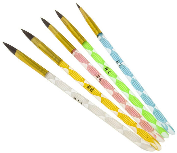 Az 5 db porcelán ecset professzionális, kolinszky sörtékből készült, hegyben végződő ecset. Ideális porcelán massza felviteléhez és utántöltéséhez. Mosolyvonalak kialakítására is kiváló a francia manikűr során. A készlet porcelán ecsetjei nagyobb hatékonyságot és kényelmet biztosít a munkavégzés során, valamint az anyag jobb felhasználását. Alaposan tisztítsd