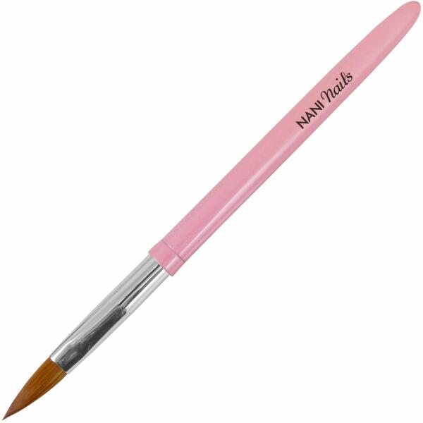 Profi kerek porcelán építő ecset természetes sörtékkel, metál rózsaszín nyéllel és NaniNails logóval. Kiváló minőségű porcelán építő ecset. Fém nyél sörtevédővel. Méretek: az ecset hossza: 159 mm a sörték hossza: 20 mm a sörték szélessége: 7 mm