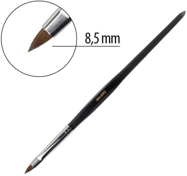 Szintetikus szőrű, hagyományos, egyenes vágású zselés építő ecset. Kisebb felületekhez és a bőr melletti részekhez könnyedén odaférünk vele, kis mérete miatt pedig ideális mosolyvonal törlésére. Erősebb, tömörebb ecset, amellyel könnyebb kontrollálni a sűrűbb anyagokat is.