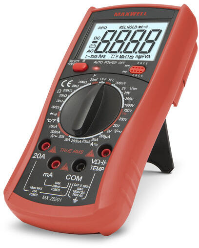 A Maxwell multiméterek kompakt képviselője az MP-25103. A kis méret ellenére az általános funkciókon felül van műanyag védőburkolat, adattartás és háttérvilágítás is. Azok akik egy megbízható kompakt digitális multimétert keresnek egyszerűbb mérési feladatokra, legyen az helyszíni szerelés, otthoni használat vagy csak kell az autónk kesztyűtartójába egy multiméter