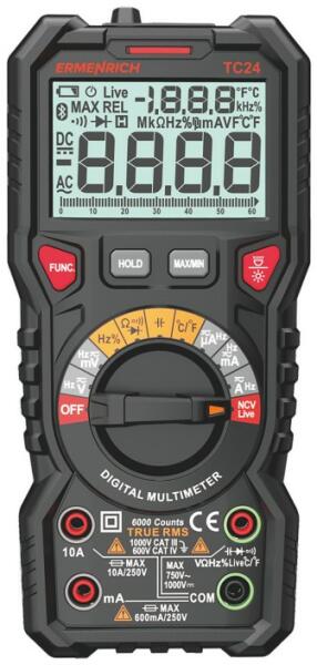 Termék részletekErmenrich Zing TC24 digitális multiméterAz Ermenrich Zing TC24 digitális multiméter egy professzionális eszköz az elektromos hálózatok és berendezések tesztelésére, valamint olyan paraméterek mérésére, mint az ellenállás, a feszültség, az áramerősség, a munkaciklus, a frekvencia, a kapacitás és a hőmérséklet. A True RMS számítás nagy mérési pontosságot biztosít.