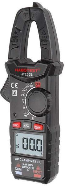 Termék részletekHabotest HT200B clamp meter The HT200B compact clamp meter provides precise measurement of various parameters. It is equipped with a backlit HD display and jaws, which size is up to 18mm. Despite its small size it impresses with functionality. For its power supply it requires 2 AAA 1.5V batteries, which must be purchased separately - they are not included in the set. Measures various parameters Th
