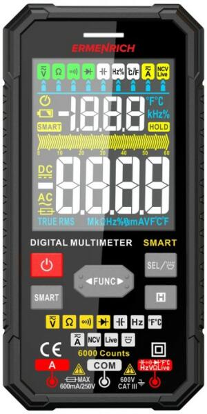 Termék részletekErmenrich Zing TC27 digitális multiméterAz Ermenrich Zing TC27 digitális multiméter elektromos berendezések és elektromos áramkörök tesztelésére szolgál. Széles körű funkciói lehetővé teszik, hogy ne csak otthon, hanem professzionális munkavégzéskor is használja. A multiméter kiváló választás mérnökök, villanyszerelők, szerelők és más szakemberek számára. Az Erm