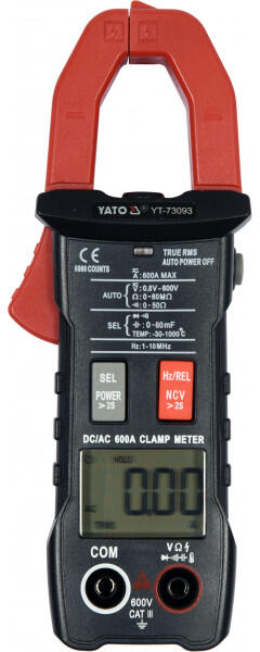 Termék részletekAz YT-73093 univerzális lakatfogó minden méréshez automatikus tartománnyal rendelkezik, amely lehetővé teszi az elektromos mennyiségek alapvető és haladó méréseinek elvégzését. A műszer nyitható pofái lehetővé teszik az egyenáram és a váltakozó áram intenzitásának mérését egyetlen vezetőben a beépített HALL érzékelő segítségével. A mérés az áramkör levá