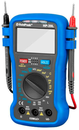 Lehetové teszi a váltakozó feszültség, egyenfeszültség, váltóáram, egyenáram, ellenállás, frekvencia, kapacitás, homérséklet és tranzisztor nyereség (hFE) mérését 66x34 mm-es LCD-kijelzo HOLD funkció (a kijelzo leáll) Automatikus leállítás Alacsony töltöttségjelzo Ütésálló ház A tesztvezetékek és a homérséklet-érzékelo mellékelve a termékhez . Mérokészü