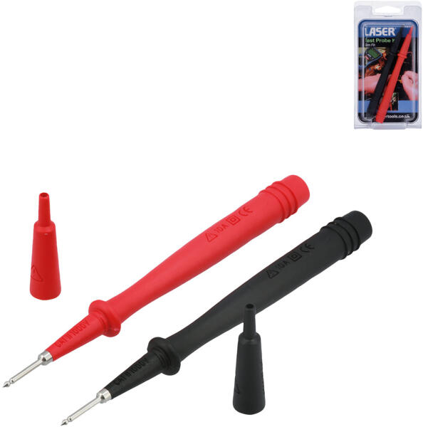 Termék részletekLaser Tools - UK Multiméterhez használható vékonyított, karcsú szárú mérőzsinór pár. Tulajdonságok: - Vékonyított ergonomikusan kialakított fogó rész. - Leszedhető hegyvédő kupakkal. - Nehezen hozzáférhető helyekre készített dizájn - A mérőfejben lévő hegy tű pontos mérést eredményez - Védettségi szint: CAT III 1000V (kupakkal felszerelt), CAT II 1000V (kupak e