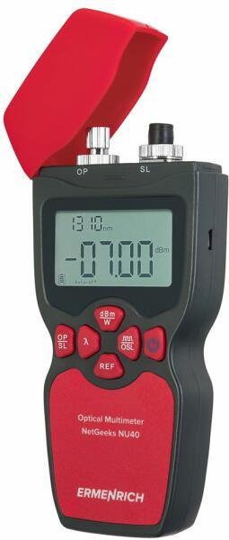 Az Ermenrich NetGeeks NU40 optikai multiméter (másnéven optikai teljesítménymérő) nélkülözhetetlen eszköz a száloptikai kommunikációs vonalak (FOCL) telepítésével és karbantartásával foglalkozó szakemberek számára. A készülék lehetővé teszi az abszolút teljesítmény mérését és a vonal két pontja közötti veszteségek megállapítását. Fényforrás-tesztelési