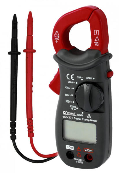 Termék részletekCommel digitális lakatfogó multiméter , LCD kijelzővel, fekete Digitális lakatfogó. - CAT III - 3 ½ digites kijelző - AC feszültség 300 V - DC feszültség 300 V - Áram 20 A -400 A - Ellenállási tartomány 200 - 200 k - Szakadásvizsgáló funkció - Akkumulátor lemerül jelzés - 3 x 3 V CR2032 elem - A mérővezetékeket tartalmazz