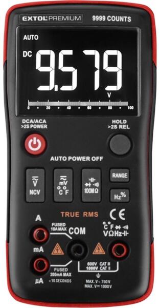 Az Extol Premium 8831251 digitális multifunkciós mérőműszer egyenfeszültség és váltakozó feszültség, egyenáram és váltakozó áram, ellenállás és hőmérséklet mérésére, diódák és tápelemek tesztelésére, valamint áramkörök vezetésének és folytonosságának vizsgálatára szolgál. True RMS funkció: valós effektív feszültség és áramerősség mérése tetsz
