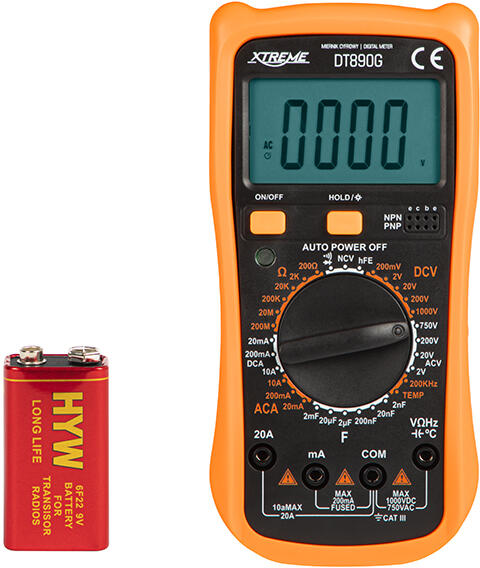 A DT890G XTREME digitális mérőműszer egy olyan termék, amely kiemelkedik pontosságával és precizitásával. A nagy és világos LCD kijelző garantálja az eredmények helyes leolvasását. A mérőműszer gyártásához felhasznált anyagok kiváló minőségűek, ami a termék tartósságában és hosszú használatában tükröződik. Kényelmes használat A mérő hátuljába épített