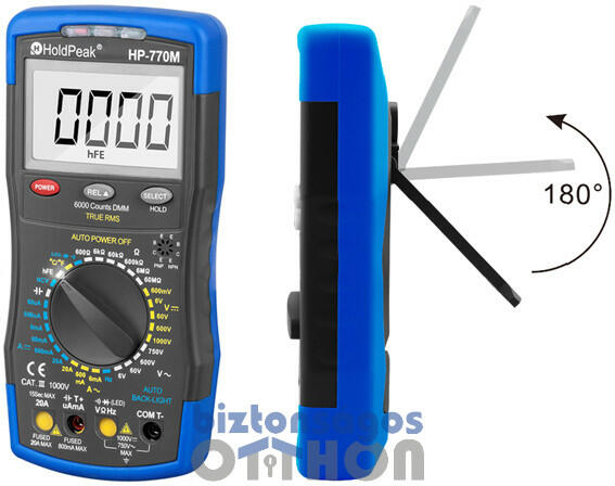 - Digitális lakatfogó multiméter - Nagyáramú - Túláramvédett - Alacsony fogyasztás - Stabil teljesítmény - A hátuljában beépített mágnes - Beépített zseblámpa Speciális kialakítású multiméter, mely képes a mért áramkör megszakítása nélkül a vezetékben folyó áram erősségét megmérni. Nagyáramú. VDC, VAC, ACC, ellenállás, kapacitás, frekvencia, hőmérsékl