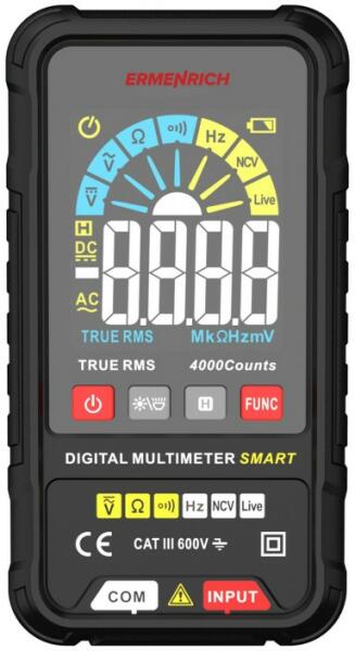 Ermenrich Zing TC14 digitális multiméterA Smart funkcióval rendelkező Ermenrich Zing TC14 digitális multiméter egy hordozható elektromos mérő- és vizsgálóeszköz professzionális és otthoni használatra. Ha bekapcsolja, automatikusan érzékeli a bejövő jelet, és méréseket végez. A Smart funkció a frekvenciamérés kivételével minden mérési üzemmódnál működik. Szüksé