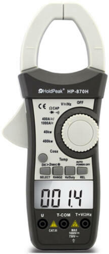 Speciális kialakítású multiméter, mely képes a mért áramkör megszakítása nélkül a vezetékben folyó áram erősségét megmérni. Nagyáramú. VDC, VAC, ACC, ellenállás, kapacitás, frekvencia, hőmérséklet mérésére alkalmas. További szolgáltatása a dióda tesztelő és szakadásjelző funkció. - Digitális lakatfogó multiméter. - Nagyáramú. - Túláramvédett. - Alacs