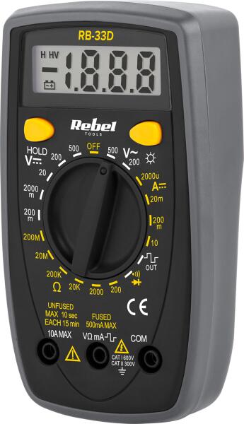 Rebel Tools RB-33D univerzális mérőműszer A Rebel Tools elsősorban a barkácsolóknak szánt felszerelések sorozata, akik maguk szeretnék elvégezni a kisebb javításokat. Mivel a jó elektromos szerszámok nem minden, ez a sorozat kibővült egy mérőműszercsaláddal. Ezek közé tartoznak az univerzális és a szorítós mérőműszerek, amelyek funkciói lehetővé teszik különböz