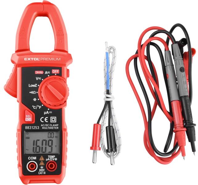 Az Extol Premium 8831253 digitális multifunkciós mérőműszer egyenfeszültség és váltakozó feszültség, egyenáram és váltakozó áram, ellenállás és hőmérséklet mérésére, diódák és tápelemek tesztelésére, valamint áramkörök vezetésének és folytonosságának vizsgálatára szolgál.