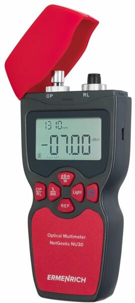 Az Ermenrich NetGeeks NU30 egy vizuális hibakereső (VFL) funkcióval rendelkező optikai multiméter, amely a száloptikai kommunikációs vonalak tervezésével, fektetésével és telepítésével foglalkozó szakemberek elengedhetetlen eszköze. A készülékkel mérheti a száloptikai rendszerforrás kimeneti teljesítményét, mérheti a kábel optikai teljesítményveszteségét, valamint